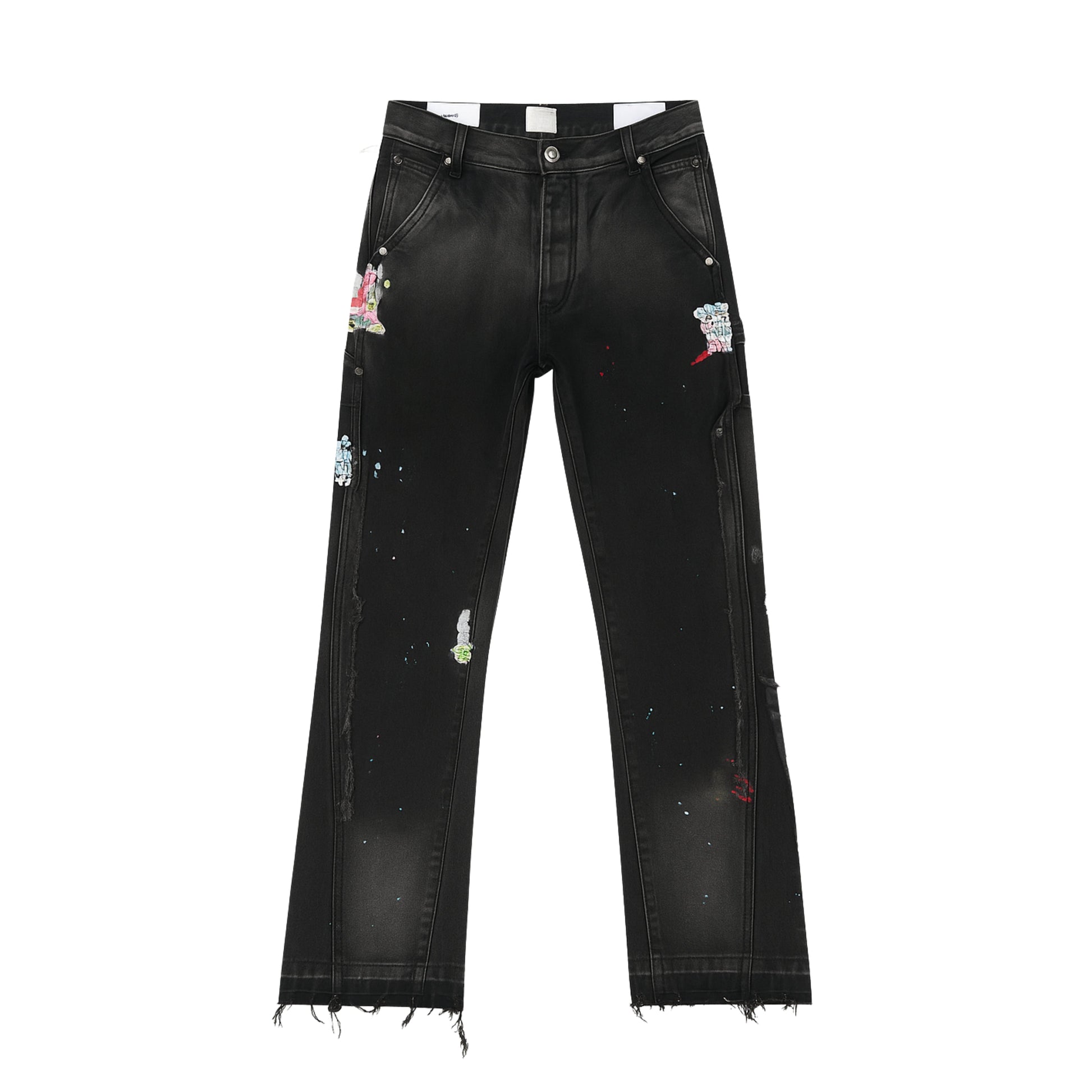 UNLOCK YOUR DRIP. A creative denim with deep navy patch panels and hand-painted splashes for an artistic street look. The straight fit keeps it easy to wear, while the patchwork adds bold character.